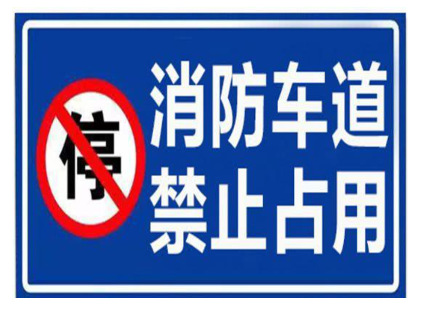 (五)在消防车通道两侧设置醒目的警示标牌,提示严禁占用消防车道,违者将承担相应法律责任等内容。警示标牌长宽不小于1m×0.6m(若受条件限制,无法满足醒目度要求,应按5:3比例加大标志的尺寸),底边离地高度不低于1.6m。