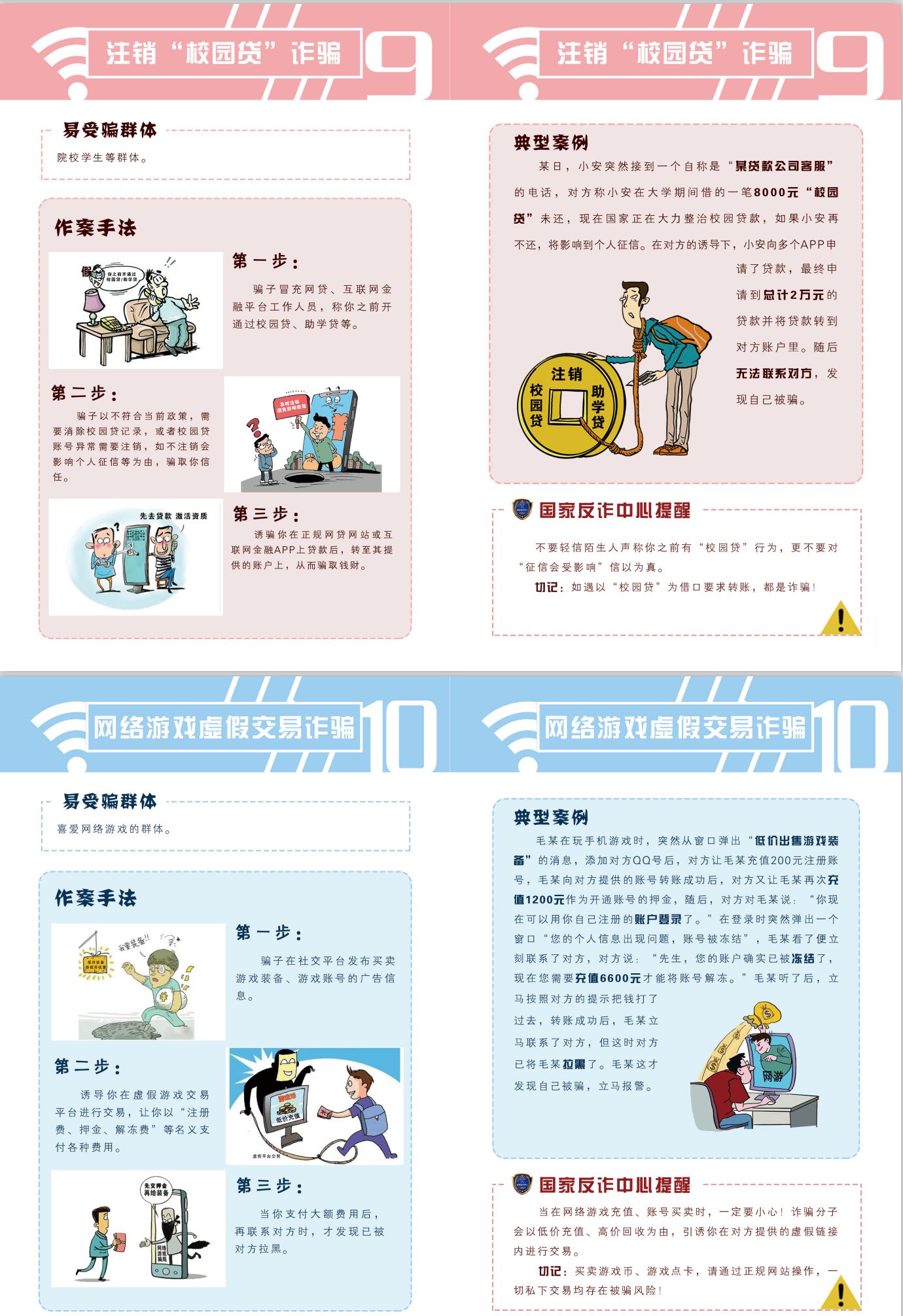 为进一步扩大反诈宣传覆盖面,提高广大群众防骗意识,国家反诈中心制作了《防范电信网络诈骗宣传手册》,向广大人民群众介绍了十种常见的电信网络诈骗类型,揭批了诈骗犯罪手法、文末有防骗神器,同时进行了防骗提示。