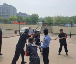 为进一步加强校园安全工作,提高反恐防暴应急能力,保卫处组织开展了反恐防暴演练活动。驻校派出所警官对学校保安人员进行擒拿、解脱基本技能的培训,现场讲解了反恐防暴器材的使用要领、注意事项以及攻防技能,同时进行了警棍盾牌、钢叉器械等操作示范。演练中,“暴徒”闯入校园,安保人员发现后立即报警并拉响警报。整个演练过程安全、有序,演练活动取得预期效果。