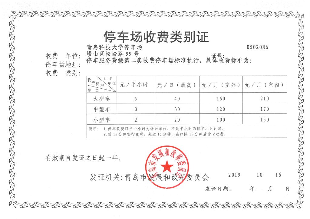 beat365英国官方网站停车场收费类别证(2019-2020)