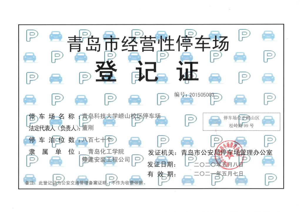 beat365英国官方网站经营性停车场登记证(2020-2021)