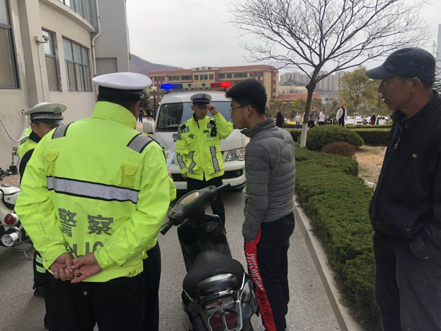 一、联合崂山交警集中清理校园违法行驶摩托车