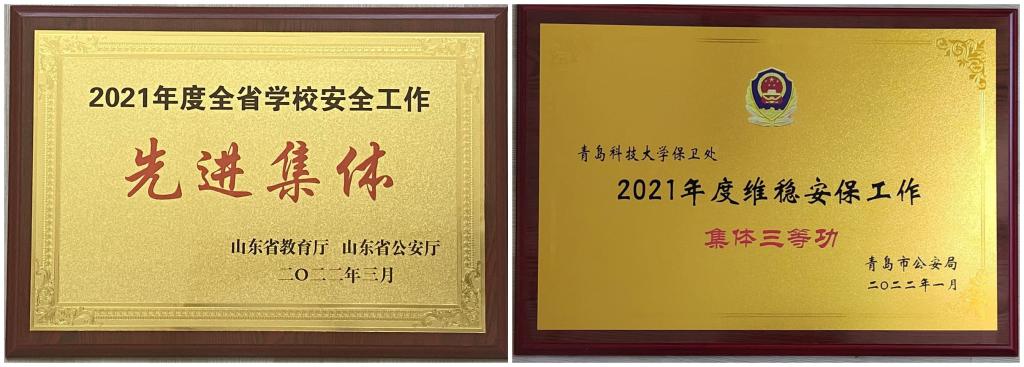 近日,从山东省教育厅、山东省公安厅发布的《关于公布2021年度全省校园安全工作先进集体和先进个人名单的通知》获悉,beat365英国官方网站被评为“2021年度全省校园安全工作先进集体”,保卫处副处长严增兴被评为“2021年度全省校园安全工作先进个人”。此外,青岛市公安局也下发文件,对2021年度全市高校文化单位先进保卫组织和先进个人进行表彰,学校保卫处荣立“2021年度维稳安保工作集体三等功”,保卫处单宝军、张良两位同志荣记个人三等功一次,余全波、仇立峰、施治宇三位同志获个人嘉奖。
