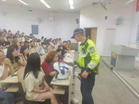 崂山交警大队风景区中队颜警官就交通安全现状、电动车安全、大学生常见交通违法等五个方面进行了讲解,通过切身经历,入校的所见所闻和崂山区、西海岸新区的交通安全宣传视频,告诉同学们要遵守交通规则,增强防范意识,发生安全事故后及时运用法律手段进行处理。