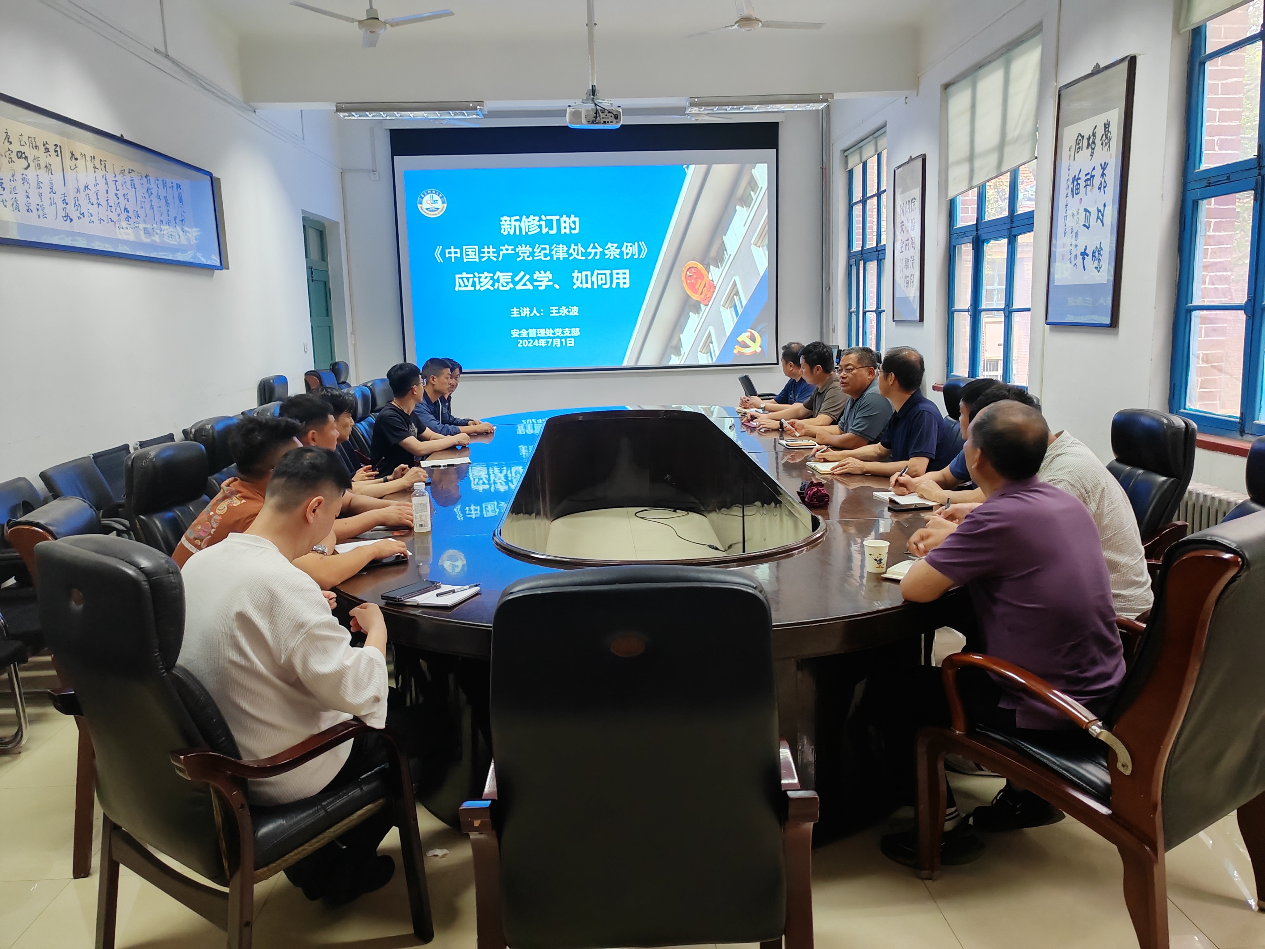 为深入贯彻习近平总书记关于开展党纪学习教育的重要讲话和重要指示精神,根据学校党委党纪学习教育工作要求,7月2日下午,beat365英国官方网站党支部书记王永波以“《中国共产党纪律处分条例》应该怎么学、如何用”为题,为支部党员同志授课。