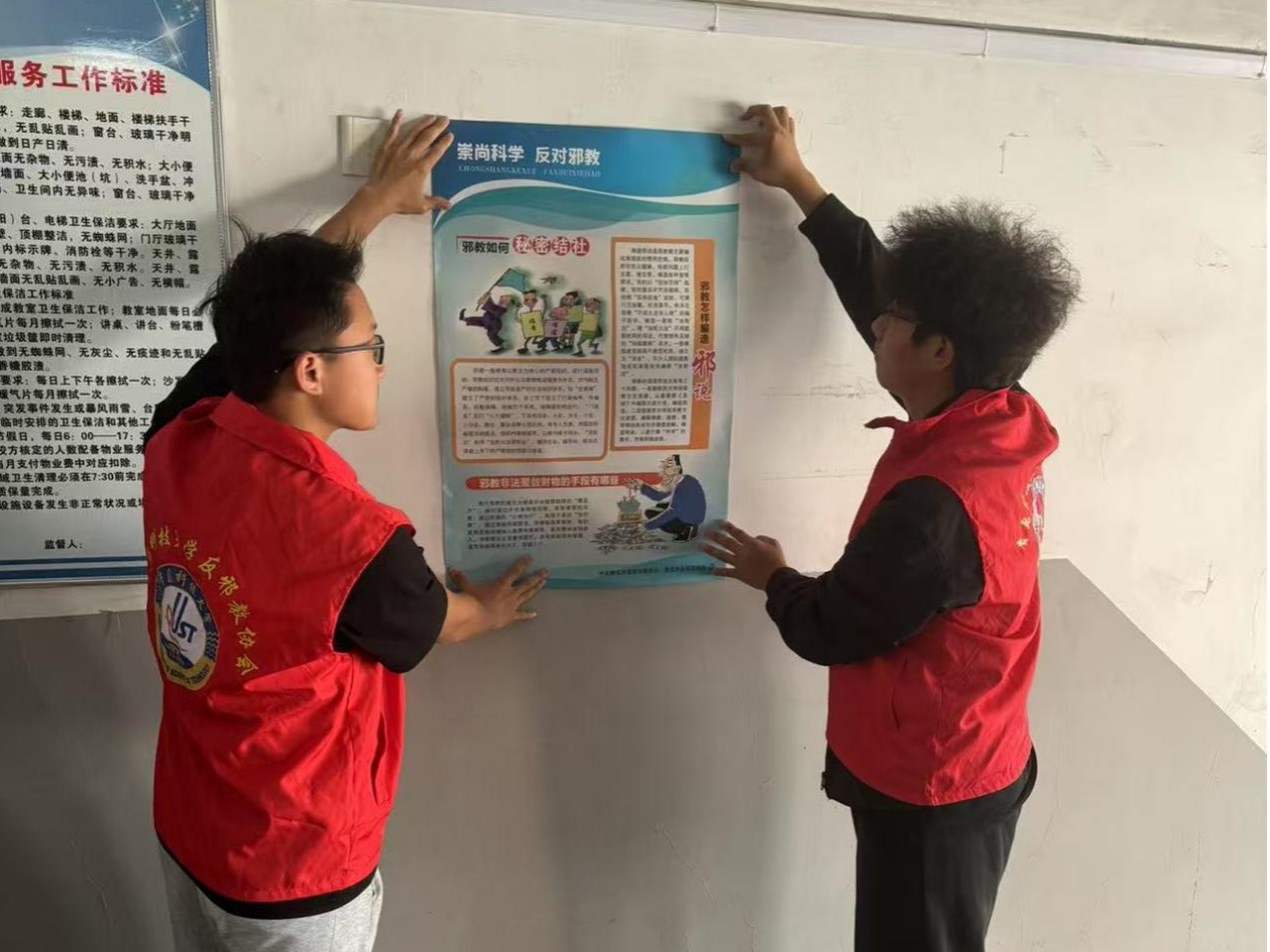 为了让反邪教理念融入日常生活,协会成员在公示栏醒目处和教学楼里分别张贴“崇尚科学,反对邪教”的海报,海报内容涵盖了邪教的定义、特征、种类、社会危害,以及如何识别邪教、遇到邪教该如何应对等实用知识,让师生们能够更全面、深入地了解邪教的本质,增强广大师生的反邪教意识,提高大家的警惕性,遇到可疑信息一定要理性辨别。