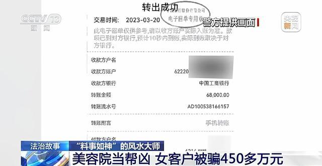 就在警方展开调查的时候,同样是在上海,还有一名女士,她为了寻求“转运”,先后支付给所谓的大师450多万元。更为巧合的是,推荐她去作法改运的朋友也是一家美容院的店长。转运、美容院、朋友推荐,这些仅仅巧合吗?当然不是,正是美容院当帮凶,实施骗局。